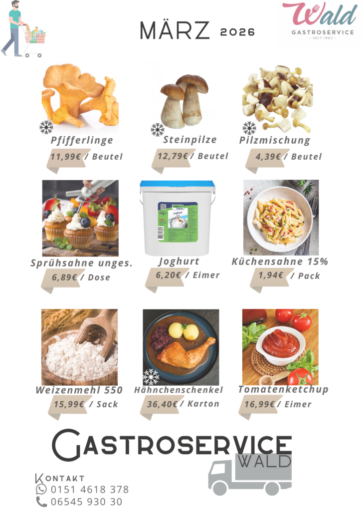 Deshalb bietet Gastroservice Wald starke Eigenmarken und Markenware für jeden Anspruch, für jede Gelegenheit und für jede Betriebsgröße. Lebensmittel von frisch über tiefgekühlt bis trocken in genau der passenden Convenience Stufe sowie ausgewählte Non-Food-Artikel für jedes Unternehmen.